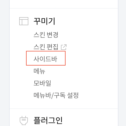 5. 좌측 메뉴 > 꾸미기 > 사이드바