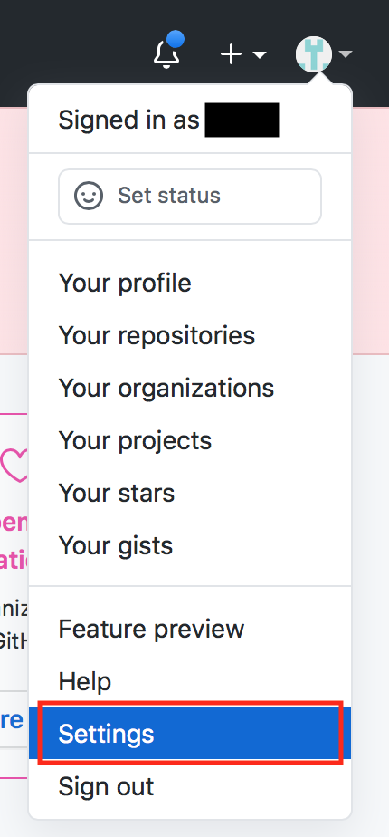 2. GitHub 홈페이지(github.com) 로그인 후, 우측 상단 - Settings