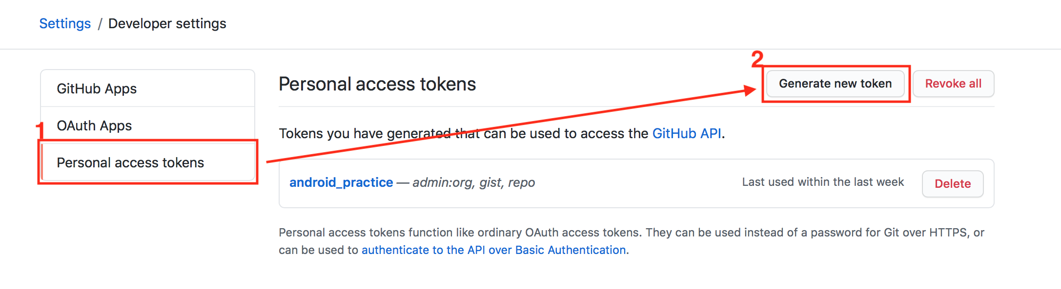 4. Personal access tokens - Generate new token